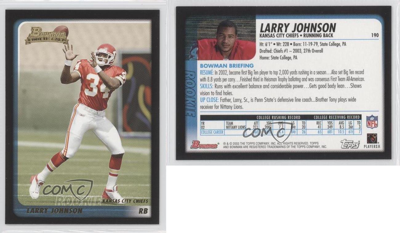 Larry Johnson Rookie Card - 2003 TOPPS DPP LARRY JOHNSON CHROME REFRACTOR PARALLEL ROOKIE CARD | eBay. We did not find results for: Check spelling or type a new query. Maybe you would like to learn more about one of these?
